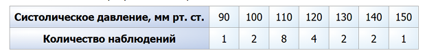 Нормальным будем считать систолическое давление от 100 до 130 мм рт. ст. Пользуясь данными таблицы, определите, какие из следующих утверждений истинны.