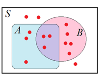 На диаграмме Эйлера изображён случайный опыт S, в котором 10 элементарных событий, показанных точками. Около каждого исхода подписана его вероятность. Найдите условную вероятность P(B|A). Результат округлите до сотых.