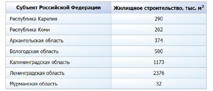 Таблица содержит данные о жилищном строительстве в 7 из 11 субъектов РФ, расположенных в Северо-Западном федеральном округе (СЗФО), по данным на 2020 г.