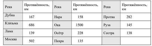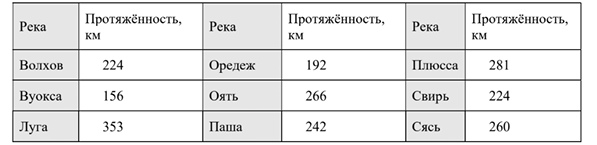 Найдите медиану протяжённости рек. Ответ дайте в км.