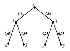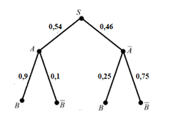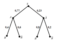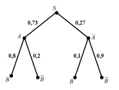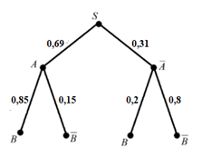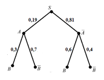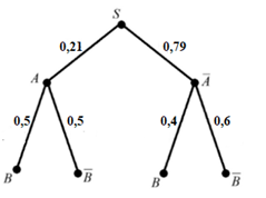 На рисунке изображено дерево некоторого случайного опыта S, в котором рассматриваются события А и В. Найдите вероятность события В (результат не округлять).
