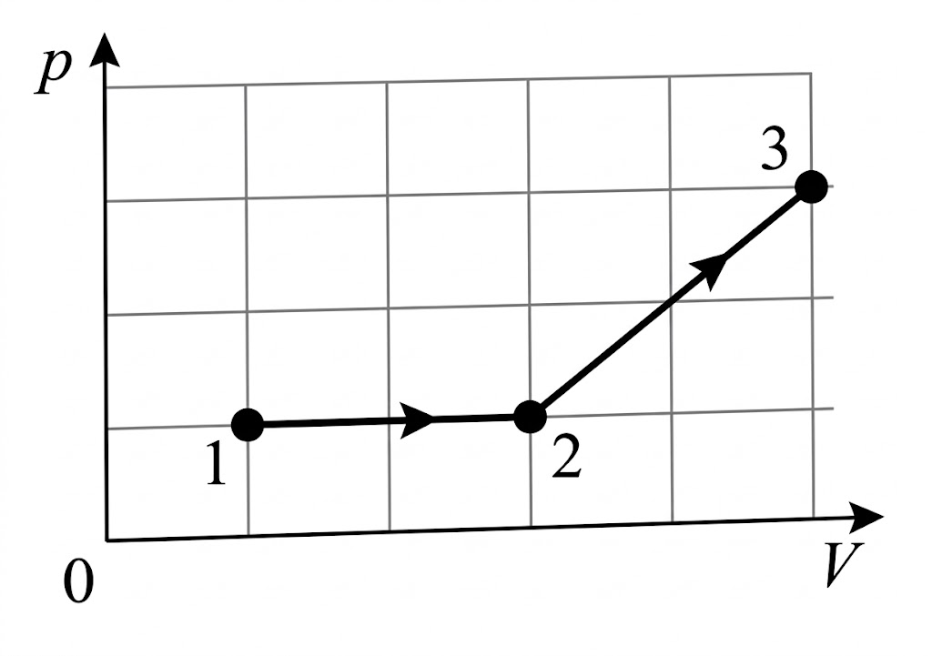 На pV-диаграмме (см. рисунок) показано, как изменялось давление газа при его переходе из состояния 1 в состояние 3.