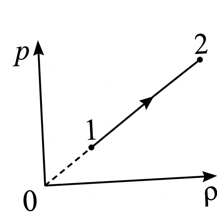 При переводе одноатомного идеального газа из состояния 1 в состояние 2 давление газа p пропорционально его плотности ρ (см. рисунок). Масса газа в процессе остаётся постоянной.