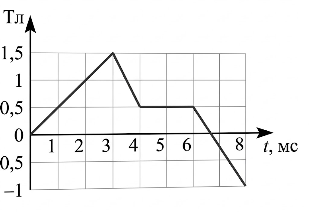 1) Модуль ЭДС индукции, возникающей в рамке в промежутке времени от 3 до 4 мс, равен 8 В.