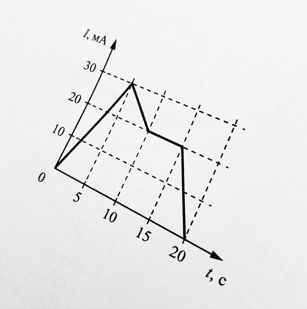 Определите заряд, прошедший по проводнику за интервал времени от 5 до 20 с.