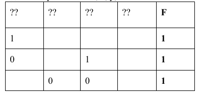 Миша заполнял таблицу истинности логической функции F (¬x ∧ y ∧ z ∧ ¬w) ∨ (¬x ∧ y ∧ ¬z ∧ ¬w) ∨ (x ∧ y ∧ z ∧ ¬w). но успел заполнить лишь фрагмент из трёх различных её строк, даже не указав, какому столбцу таблицы соответствует каждая из переменных w, x, y, z.