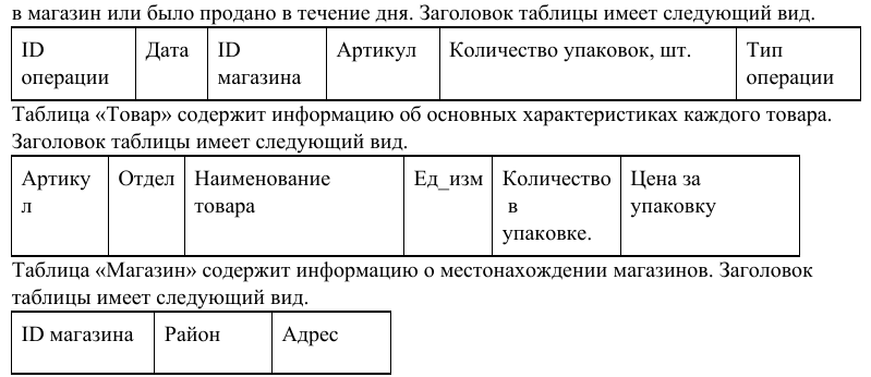 В файле приведён фрагмент базы данных «Кондитерские изделия» о поставках конфет и печенья в магазины районов города. База данных состоит из трёх таблиц. Таблица «Движение товаров» содержит записи о поставках товаров в магазины в течение первой половины августа 2021 г., а также информацию о проданных товарах. Поле Тип операции содержит значение Поступление или Продажа, а в соответствующее поле Количество упаковок, шт. внесена информация о том, сколько упаковок товара поступило в магазин или было продано в течение дня.