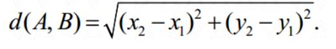 d(A, B) = √((x2 - x1)2 + (y2 - y1)2)