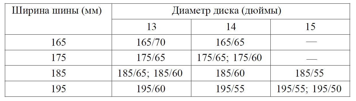 Ширина шины (мм): 165, 175, 185, 195.