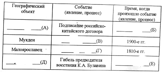 Географический объект | Событие (явление, процесс) | Время, когда произошло событие
