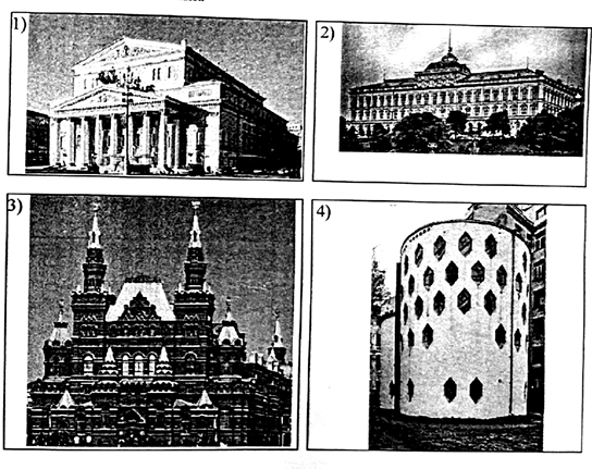Какой из представленных ниже памятников архитектуры был создан в период существования государства, название которого указано на монете? В ответе запишите цифру, которой обозначен этот архитектурный памятник. Укажите название направления (течения) в архитектуре, к которому относится этот памятник.
