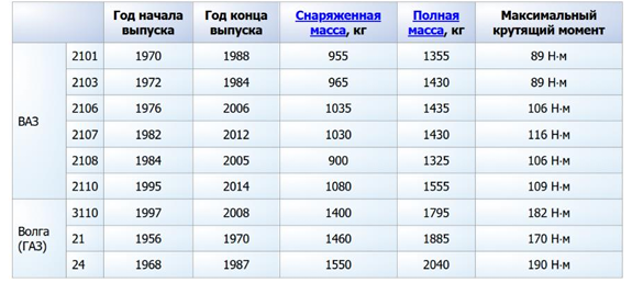 (Данные из таблицы для автомобиля Волга 24: Полная масса 2040 кг, Снаряженная масса 1550 кг).