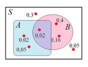 На диаграмме Эйлера изображены элементарные события некоторого случайного опыта S. Найдите вероятность события не А и В.
