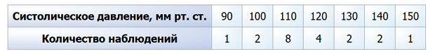 Нормальным будем считать систолическое давление от 100 до 130 мм рт. ст. Пользуясь данными таблицы, определите, какие из следующих утверждений истинны.