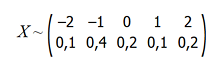X ~ (-2, -1, 0, 1, 2) с вероятностями (0.1, 0.4, 0.2, 0.1, 0.2)