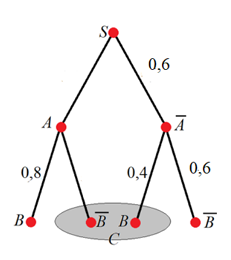 На рисунке изображено дерево некоторого случайного опыта S, в котором рассматриваются события А и В. Найдите вероятность события В.