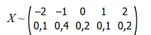 X ~ (-2, -1, 0, 1, 2) с вероятностями (0.1, 0.4, 0.2, 0.1, 0.2)