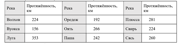 В таблице показаны данные о реках Ленинградской области протяжённостью более 150 км.