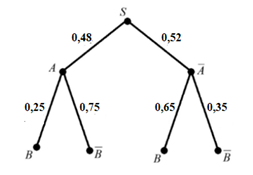 На рисунке изображено дерево некоторого случайного опыта S, в котором рассматриваются события А и В. Найдите вероятность события В (результат не округлять).