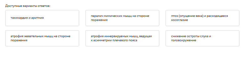 одностороннем поражении каждого из этих нервов возникают характерные неврологические симптомы. Установите